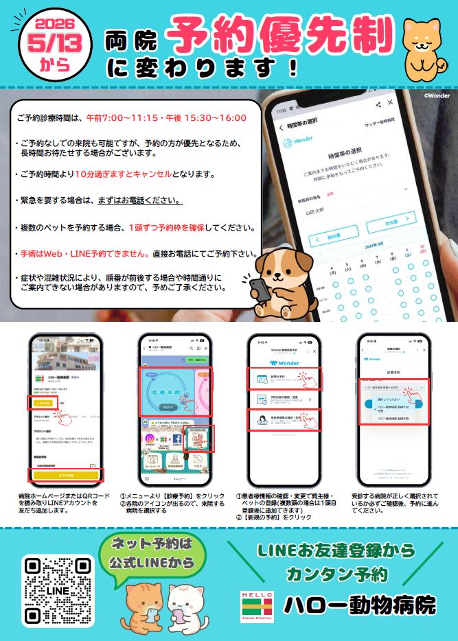 船橋本院、新鎌ケ谷分院ともに当院は、2026年5月13日(水)より【予約優先制】となります。